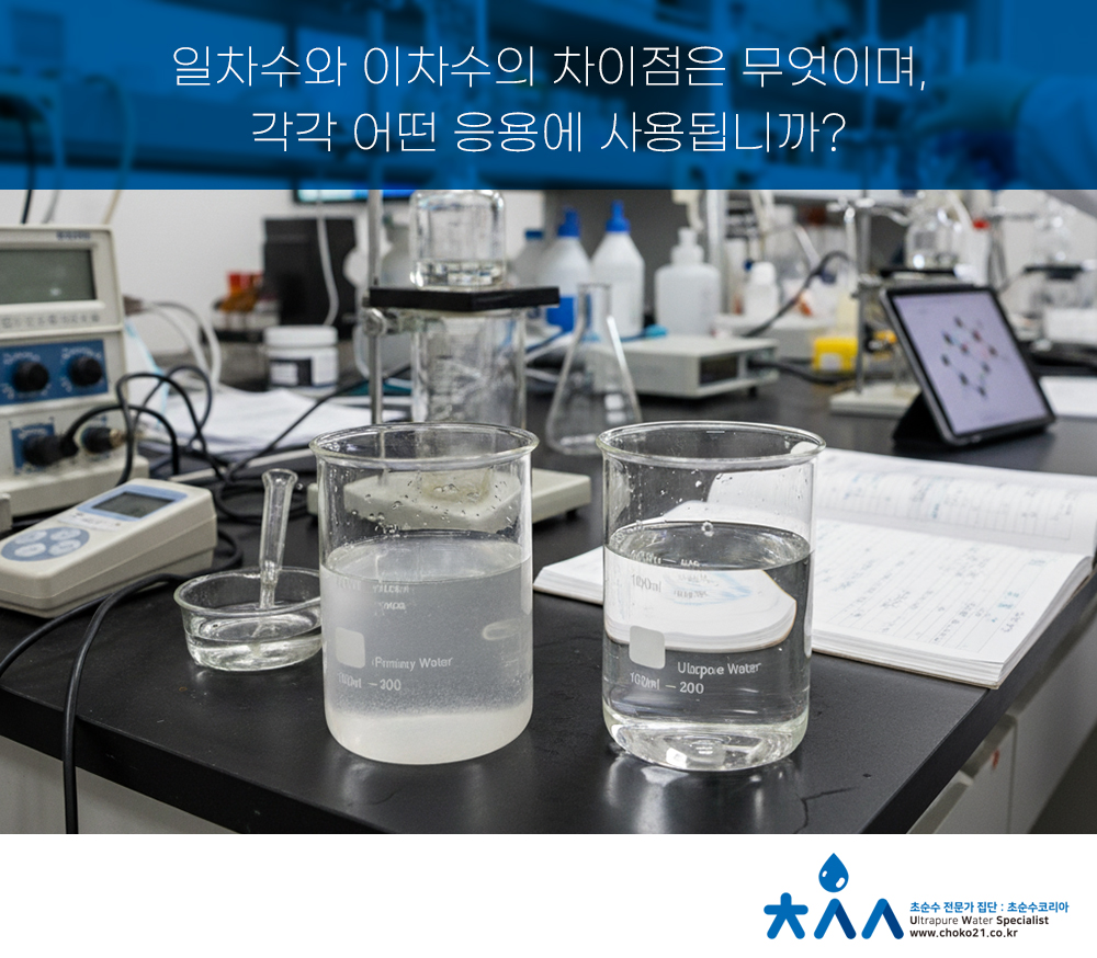 ÀÏÂ÷¼ö¿Í ÀÌÂ÷¼öÀÇ Â÷ÀÌÁ¡Àº ¹«¾ùÀ̸ç, °¢°¢ ¾î¶² ÀÀ¿ë¿¡ »ç¿ëµË´Ï±î?ÀÏÂ÷¼ö´Â ¼öµ¾¹°¿¡¼ RO¸ðµâ(¶Ç´Â ROÀåÄ¡)¸¦ °ÅÃÄ »ý»êµÇ´Â Á¤Á¦¼ö·Î¼ ¼öÁúÀº º¸Åë Àüµµµµ (ºñÀúÇ×ÀÇ ¿ª¼ö)´Â 1~10 uS/cm, À̸çTOC´Â 50 ~ ¼ö¹éppb Á¤µµ µË´Ï´Ù. ¼öÁúÀº ¼öµ¾¹°(¿ø¼ö)ÀÇ ¼öÁú¿¡ µû¶ó ´Þ¶óÁö¸ç, Àüµµµµ¿Í °ü·ÃÇÏ¿© ¼öµ¾¹° À̿¼ººÐµéÀÇ 92~98% Á¤µµ Á¦°ÅµË´Ï´Ù.