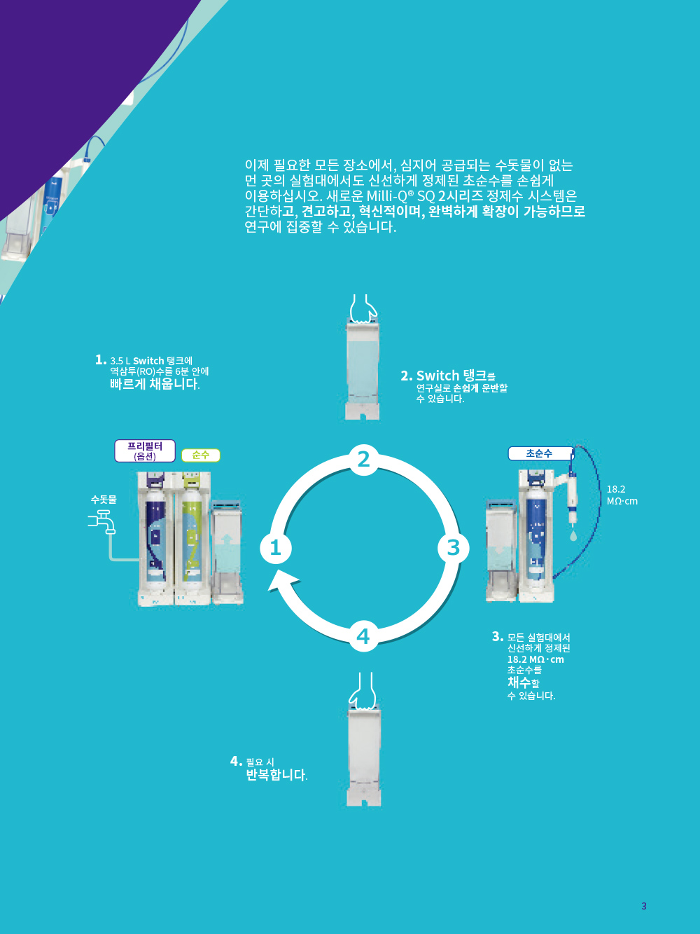 Milli-Q¢ç SQ200P´Â 1Â÷¼ö¶Ç´Â 2Â÷¼ö¿¡¼ 3Â÷¼ö¸¦ »ý»êÇØÁÖ´Â Ãʼø¼ö Á¦Á¶ ½Ã½ºÅÛÀÔ´Ï´Ù